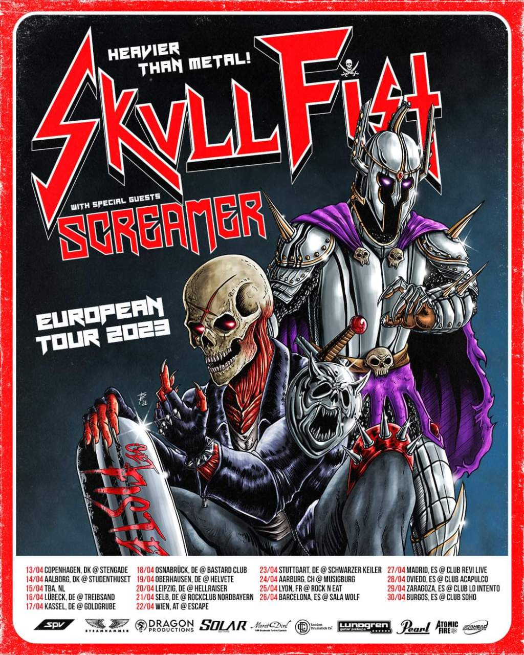 Get ready as a mammoth tour is coming this April to Europe. The legends that are Skullfist are embarking on a European tour with support from the almighty Screamer. Skullfist will promoting their most recent release ‘Paid In Full’ and Screamer will be celebrating of their 2023 release ‘Kingmaker.’ You can see the full list of dates on the poster below and you can also get further information by visiting the bands on their social links.