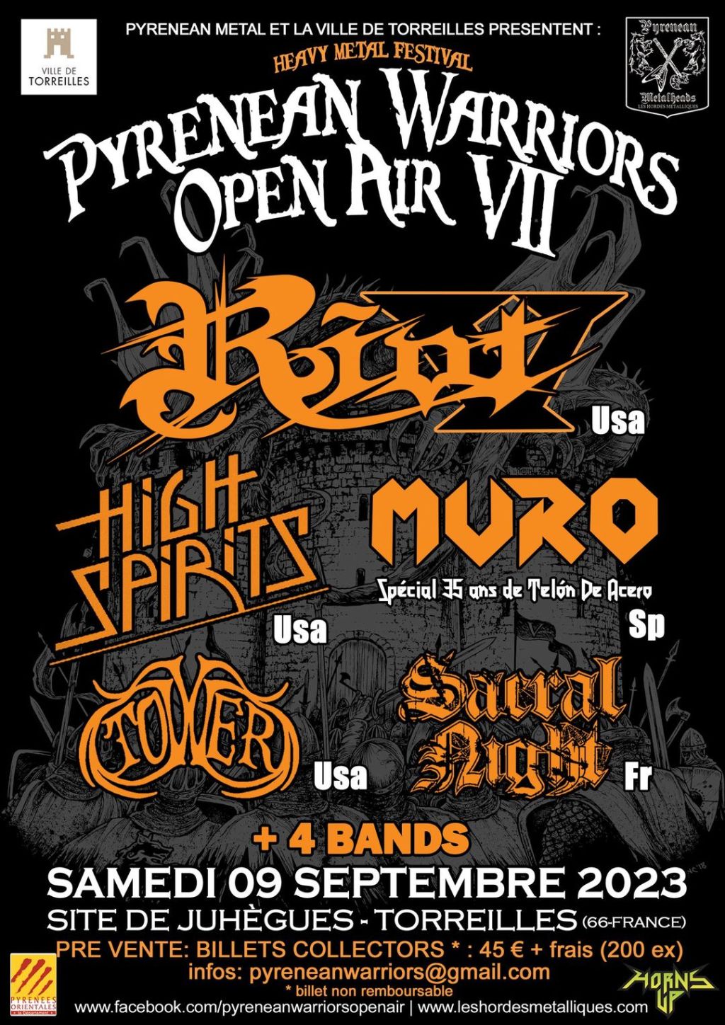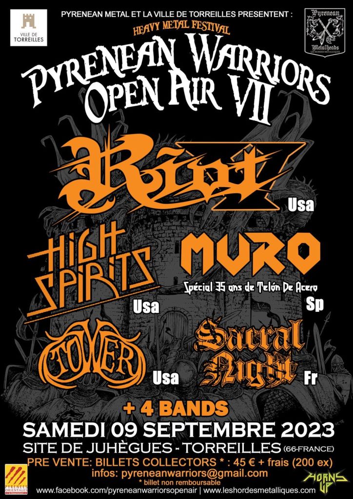 On the 09th September 2023 hitting Site De Juhégues – Torreilles in France will be the Pyrenean Warriors Open Air VII Festival featuring a powerful line up of quality bands! Get Ready for the legendary Riot V, the USA’s very own High Spirits, Muro, Tower and the countries very own Sacral Night! Tickets are currently priced at €45 and more information on the festival and how to buy ticktes can be found here: https://www.facebook.com/pyreneanwarriorsopenair