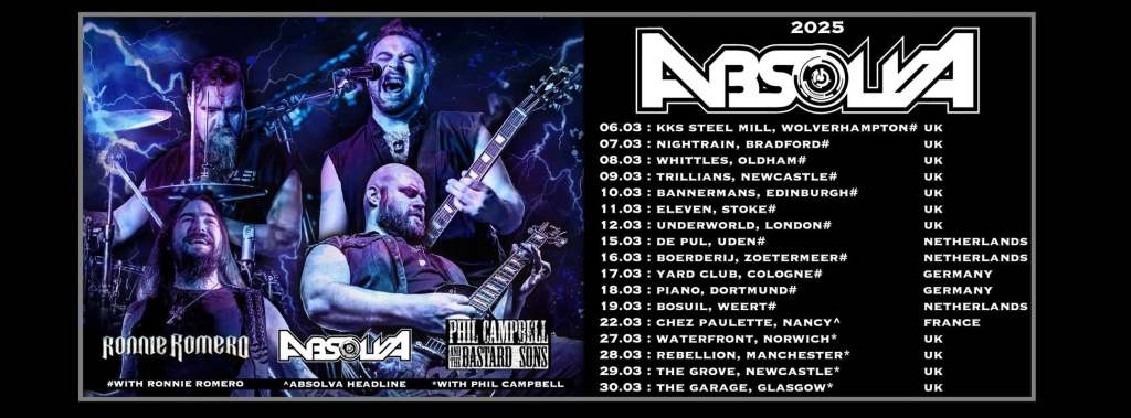 The tour will visit the UK, with stops in Bradford, Oldham, Manchester, Newcastle, Edinburgh, Stoke, and London, before continuing to Netherlands and Germany. This is an exciting opportunity to experience Ronnie Romero’s captivating performances alongside Absolva’s engaging live set.