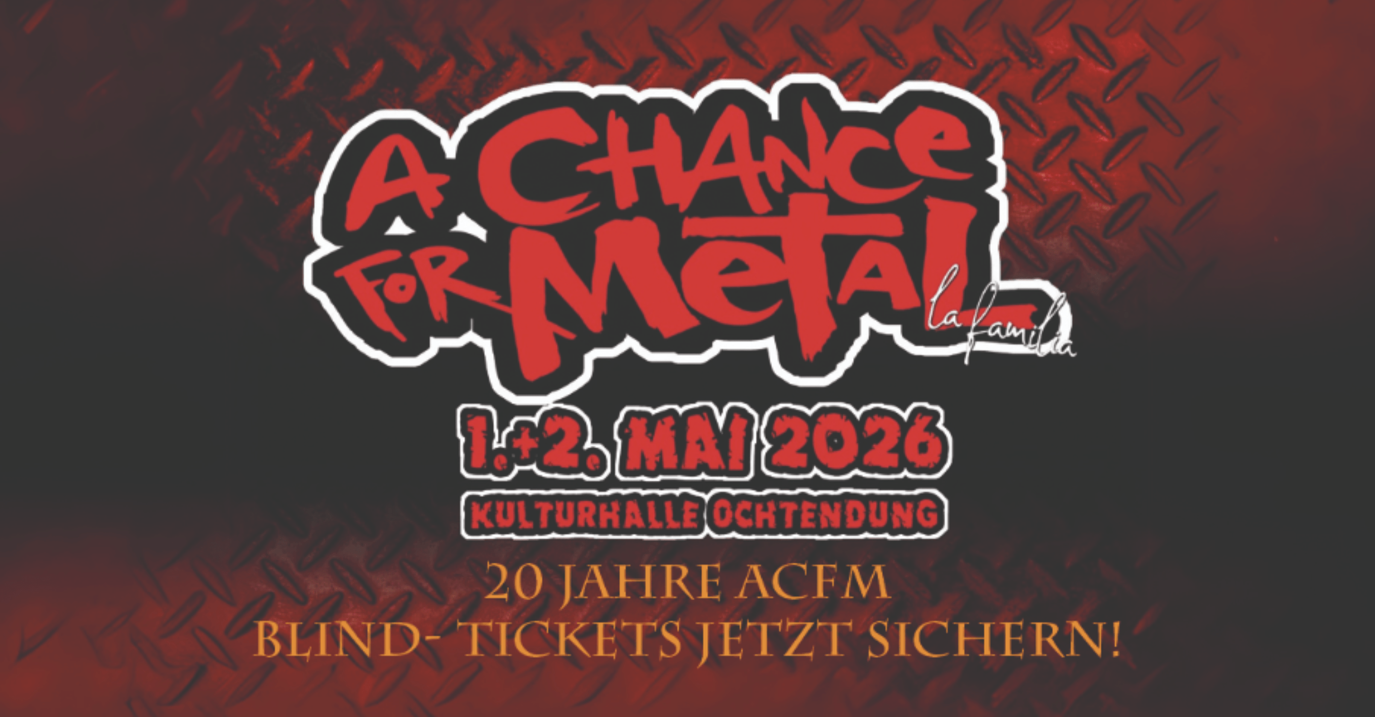 The long-running A Chance For Metal Festival (ACFMF) celebrates two decades of heavy metal, volunteer spirit, and cultural commitment to rural communities. Following a successful 2025 edition with 15 bands and over 1,600 hours of volunteer efforts the festival will continue in 2026!